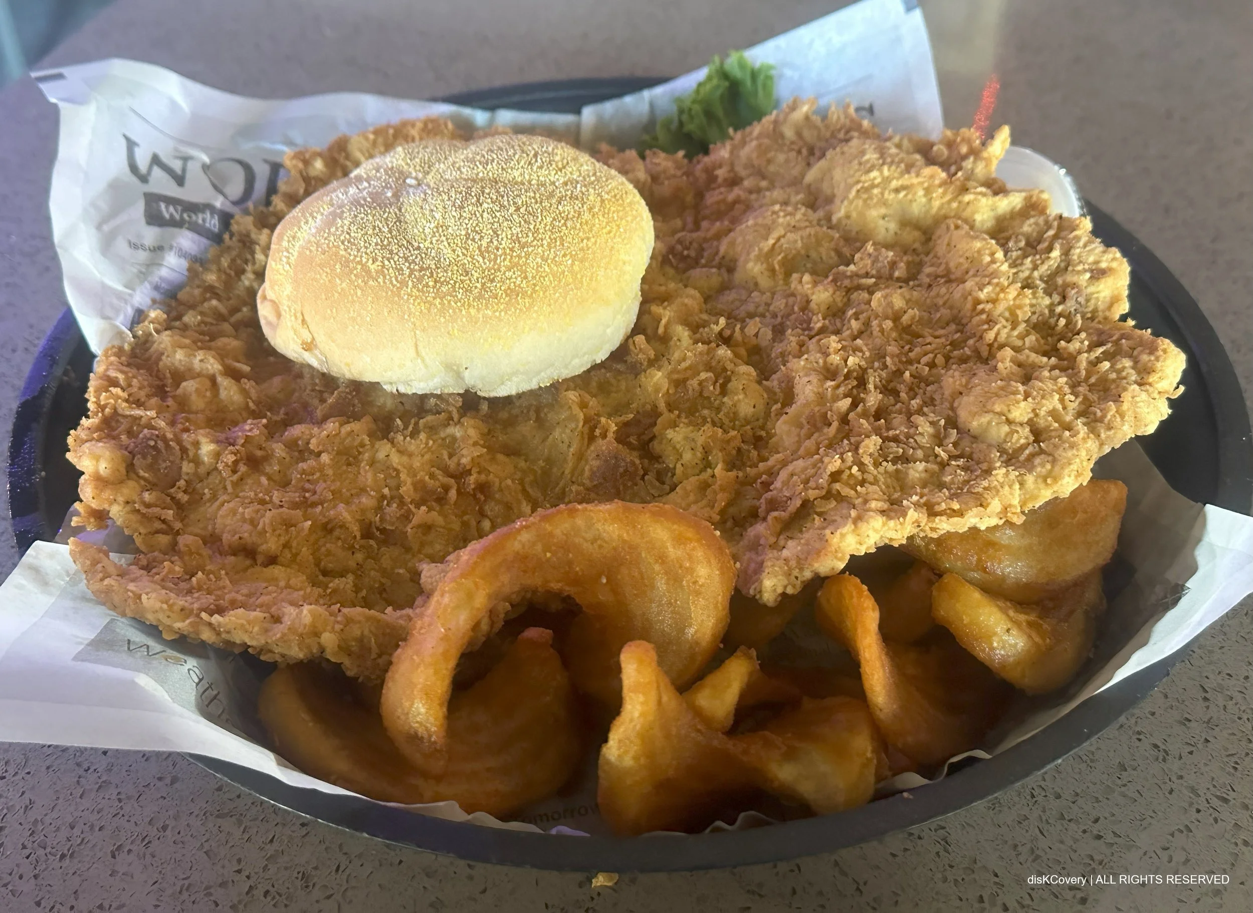 In terms of combine surface area and girth, the Iowa-Style Tenderloin at 3Halves in Liberty may be the city’s largest. PHOTO CREDIT - disKCovery
