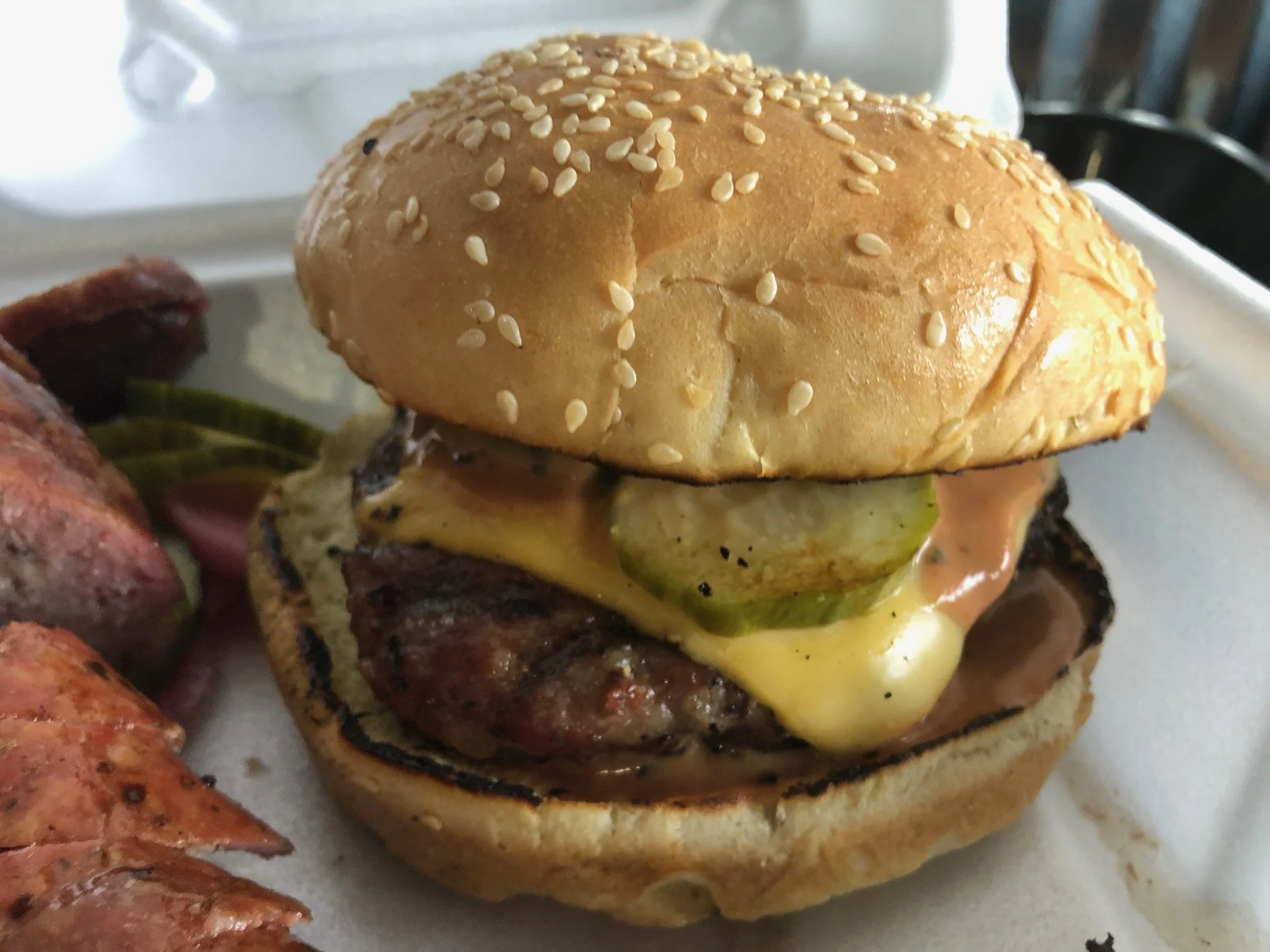 In doing a deep dive into Kansas City barbeque in 2023, I never imagined that I would also find one of my favorite burgers in the city. When offered, that’s exactly what the burger at Harp Barbecue is. It’s one of the best in the city! As far as burgers go, the Harp edition is rather straightforward and simple, but the quality of ingredients is what sets it apart. A hefty, juicy, smoky patty of ground beef brisket is grilled and topped with Deli style American cheese, house-made pickles, and a secret sauce that feels like Thousand Island but almost has a smoky Chipotle flair. Served on a perfectly, toasted, soft sesame seed bun, this is the archetypal burger. In recent months, the sandwich has gone from being a regular daily offering to more of a weekly special. It can be tough to pass on Harp’s mouthwatering barbeque but if you have the chance to try this burger, don’t even hesitate.