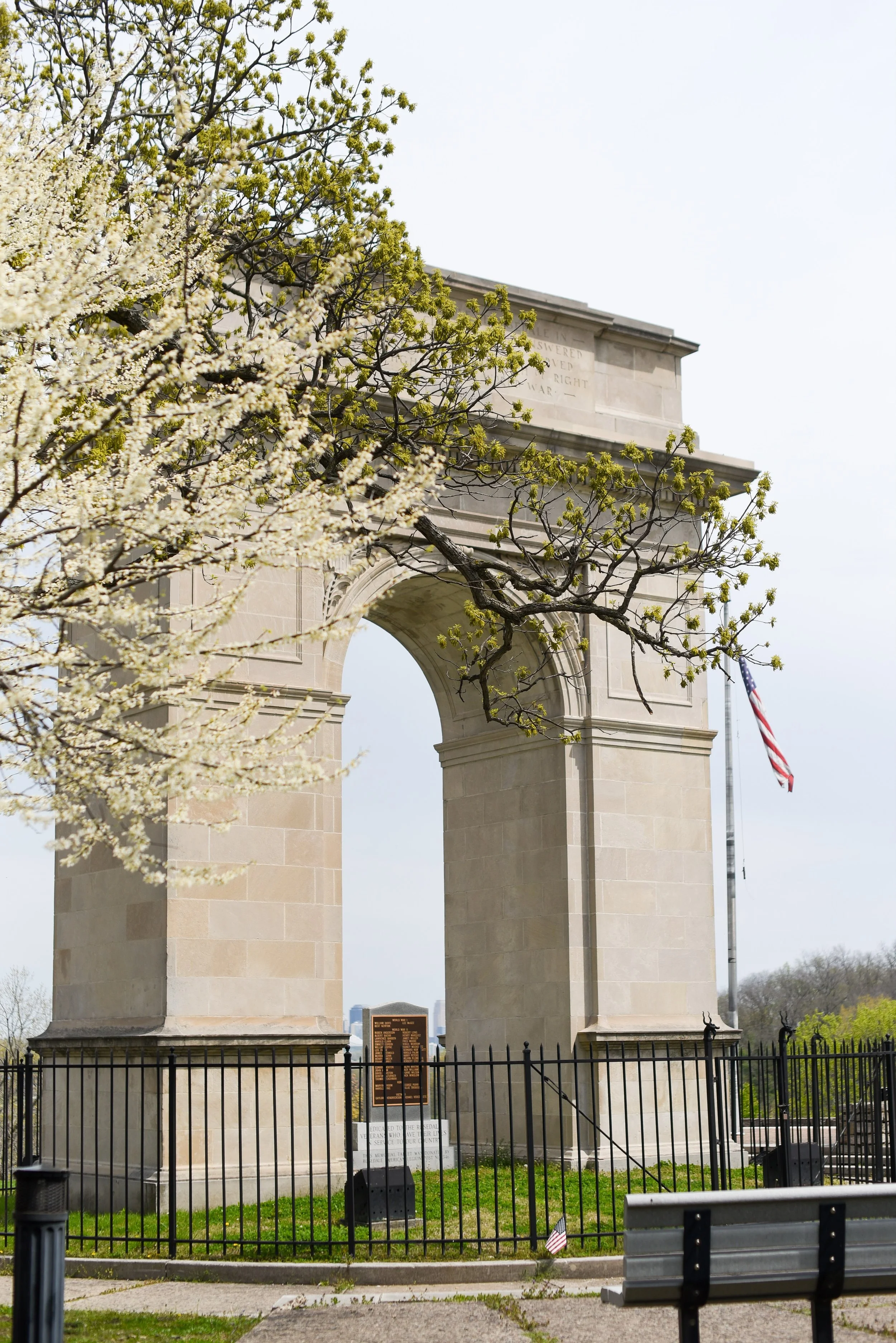 Since that time, the Rosedale Memorial Arch has been carefully maintained by the parks departments of Kansas City, Kansas and Wyandotte County. In 1993, a small marker, which stands in stark contrast to the monument, was installed underneath the arch to honor those Rosedale residents who died in service to their country during World War I, World War II, the Korean War, and the Vietnam Conflict. Improvements have been made in subsequent years that make this monument accessible by foot, bicycle, car, and ADA (American Disabilities Act) friendly as well. Today, the Arch remains a testament to those brave local men and a reminder of small but proud city turned Kansas City neighborhood.