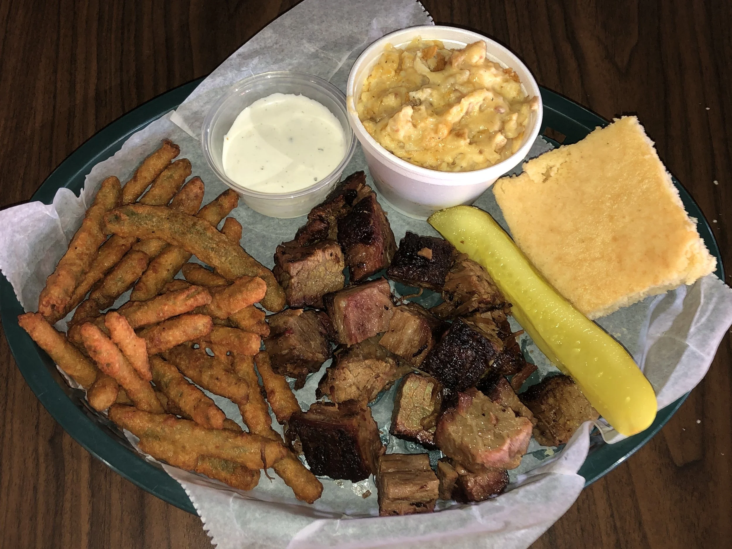 So, What Do I Get? The Burnt End Dinner is an excellent option. Choose a combination of beef and sausage. The beef burnt ends are a tender, melt-in-your mouth burnt end. The sausage rounds have nice flavor and texture. Choose for your sides, the pit beans (which are so delicious) and pay the upcharge for the hashbrown casserole. You’ll thank me later! For an appetizer, consider the Texas Toothpicks - a mix of fried onions and jalapeños that tends to be a little more onion heavy.